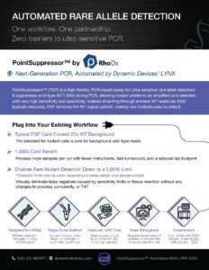 PointSuppressor™ (PSP) is a high-fidelity, PCR-based assay for ultra-sensitive rare allele detection. It suppresses wild-type (WT) DNA during PCR, allowing mutant alleles to be amplified and detected with very high sensitivity and specificity. Instead of sorting through endless WT reads (as NGS typically requires), PSP removes the WT signal upfront, making rare mutants easy to detect.